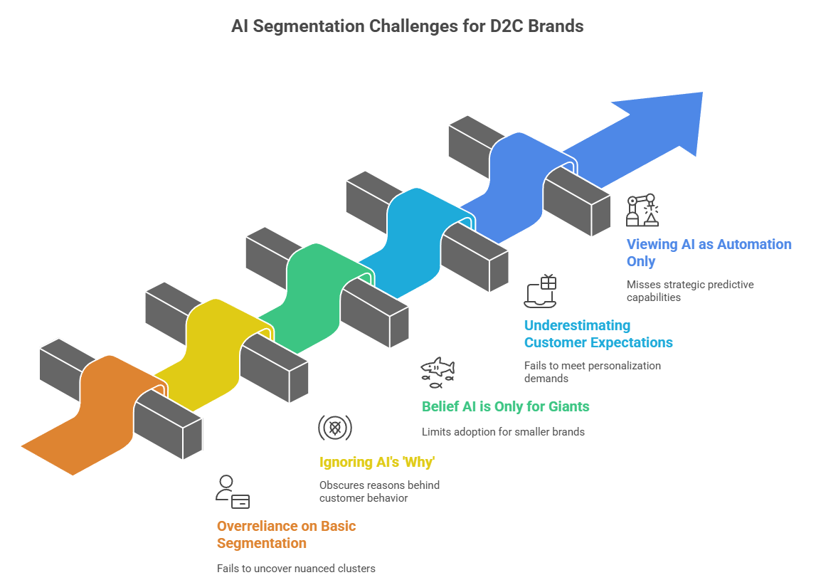 1. Overreliance on Basic Segmentation:– Many D2C brands believe simple demographic or RFM segmentation is sufficient. However, research demonstrates that AI-driven segmentation significantly outperforms these traditional methods by uncovering nuanced customer clusters (Journal of Retailing and Consumer Services, 2023).